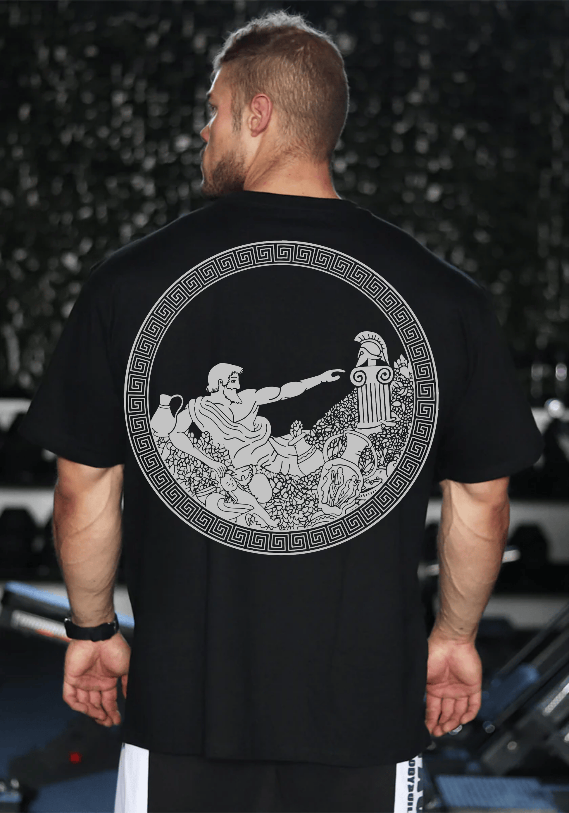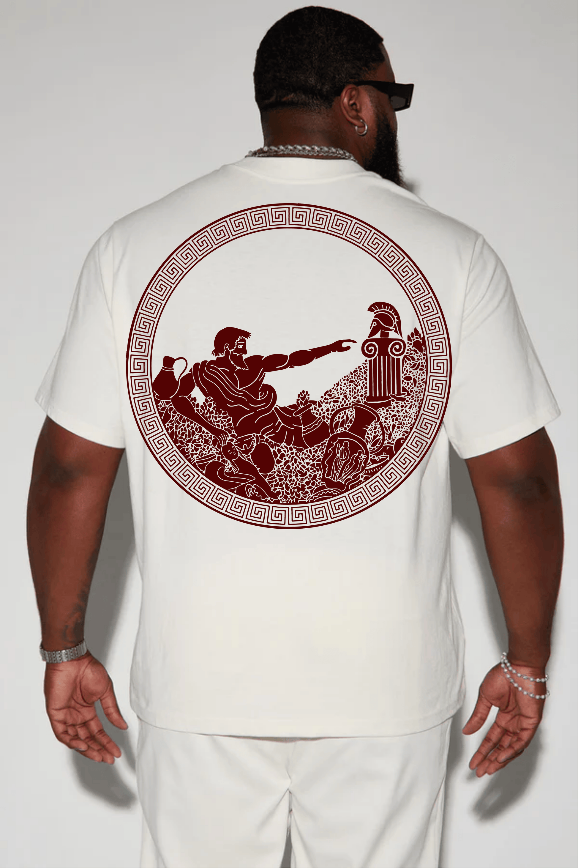 This oversized shirt draws inspiration from Michelangelo's iconic *Creation of Adam*, blending artistic heritage with modern comfort. Embody the aspiration to reach out and grab what is yours, for one may lie in treasures and still seek inherent purpose. Crafted from a robust polyester/cotton blend, it offers the perfect balance of breathability and ease, making it ideal for both active days and relaxed moments.
